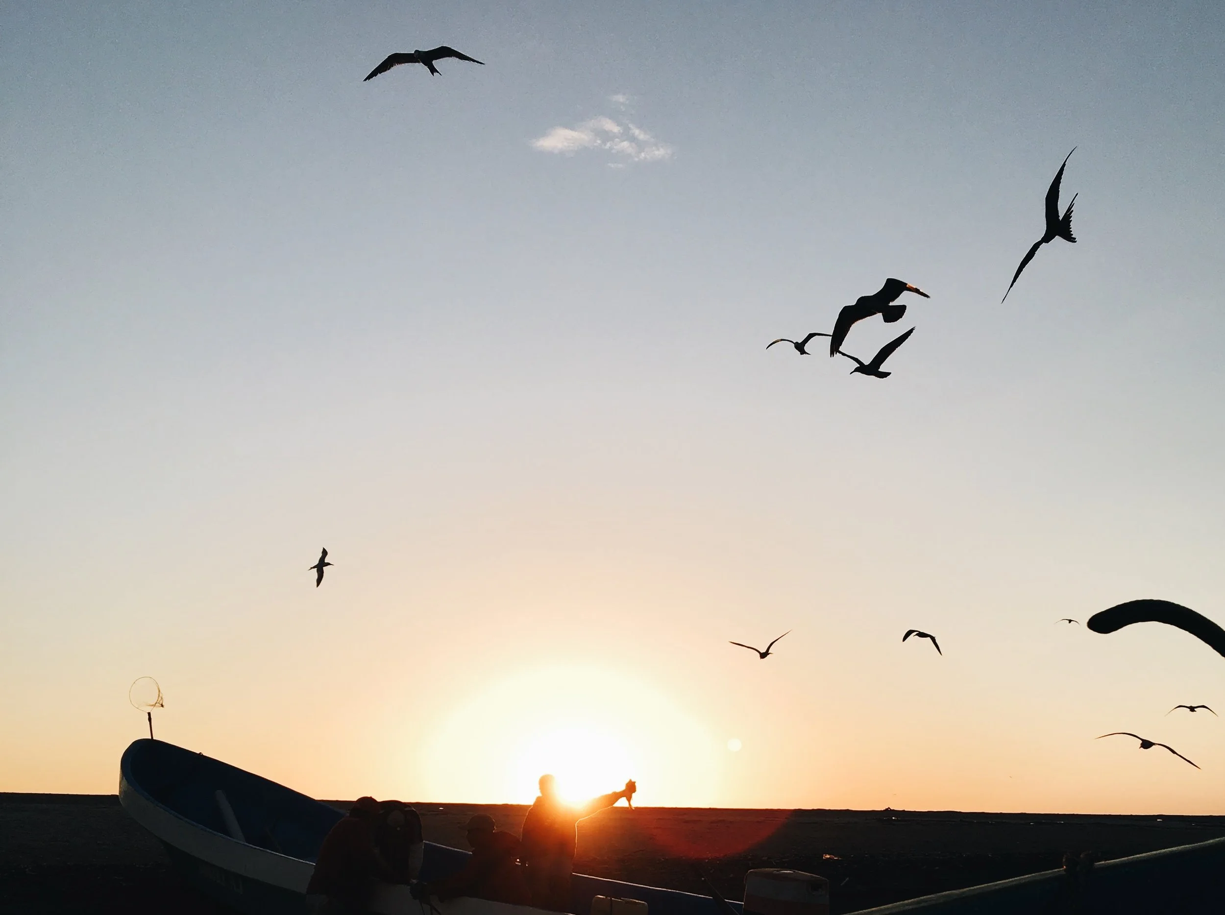 We released baby sea turtles into the ocean. And then we saw the sunset and fishermen leave extras to the birds.