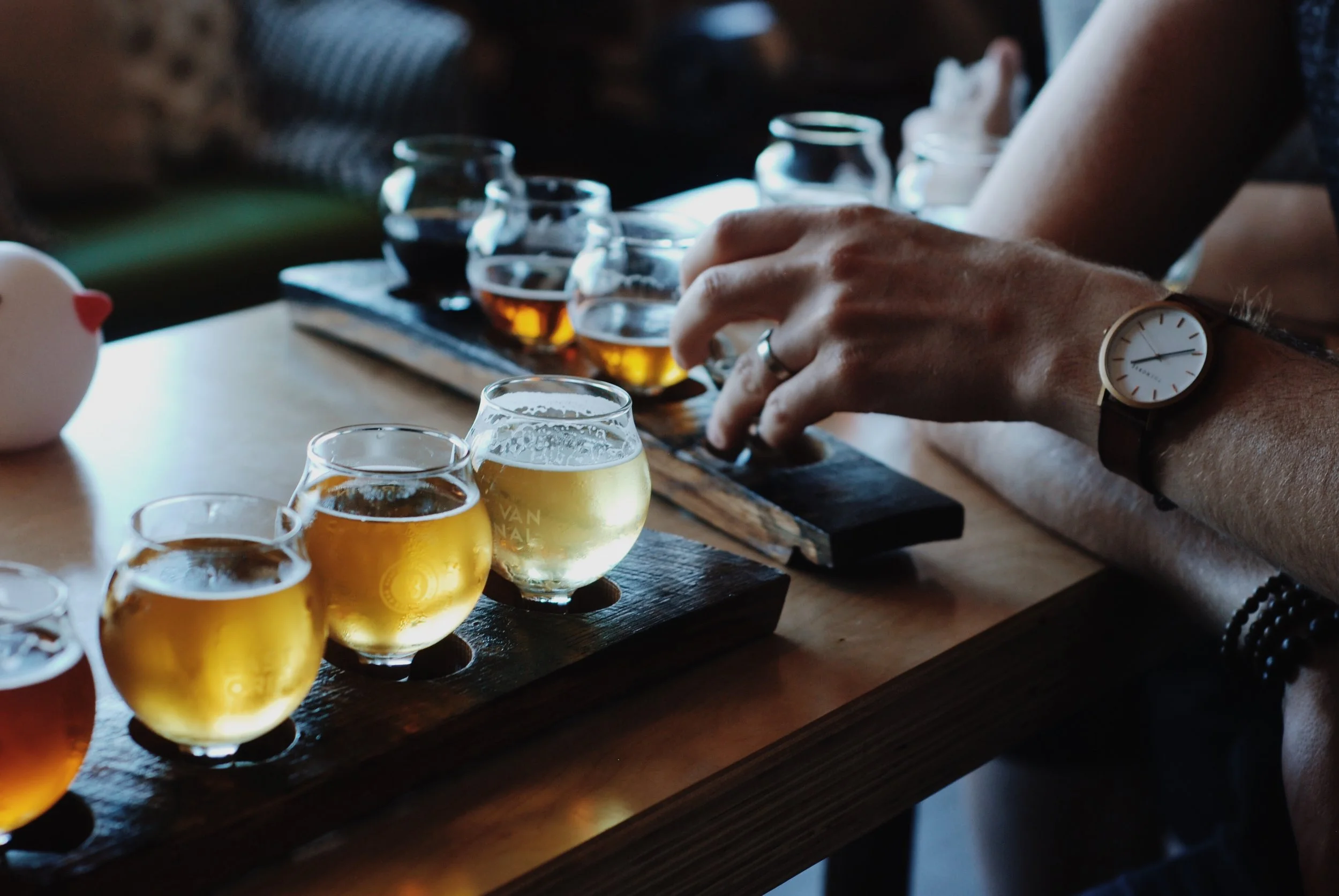 Some of the beers, like a barley wine, may have like 14% alcohol, which is like the biggest glass of wine you would ever, ever have. Some, like a raddler may only have like 3% which means you're essentially having a juice.