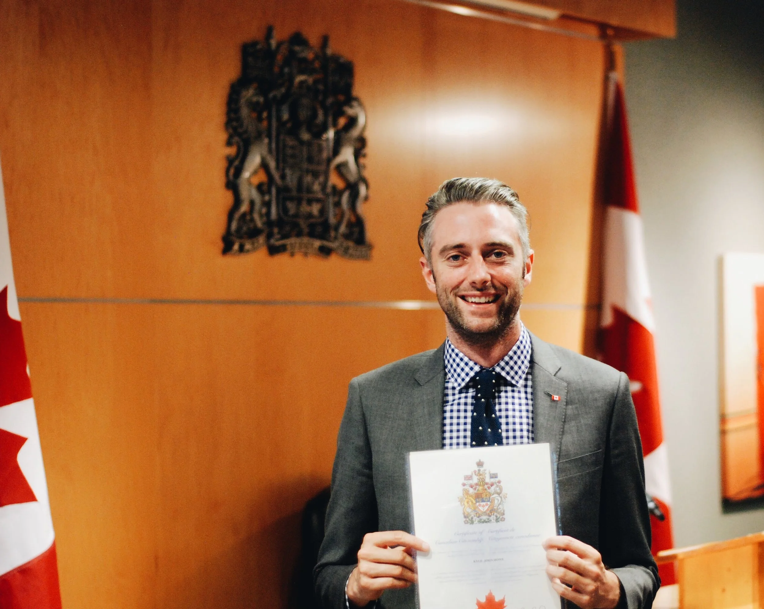 2 years ago Kyle went through all the rigorous testing on Wayne Gretzky + moose + being polite (+ some stuff about voting "freedom, democracy, prosperity + security") + got a little miniature flag + became a legally voting member of the great country of Canada, eh? I possibly balled my eyes out then we went out for smoked salmon + Caesars. That night I surprised him with all of his friends gathered at the Legion buying buckets of Molson Canadian - and thus his first Canadianniversary was born.
