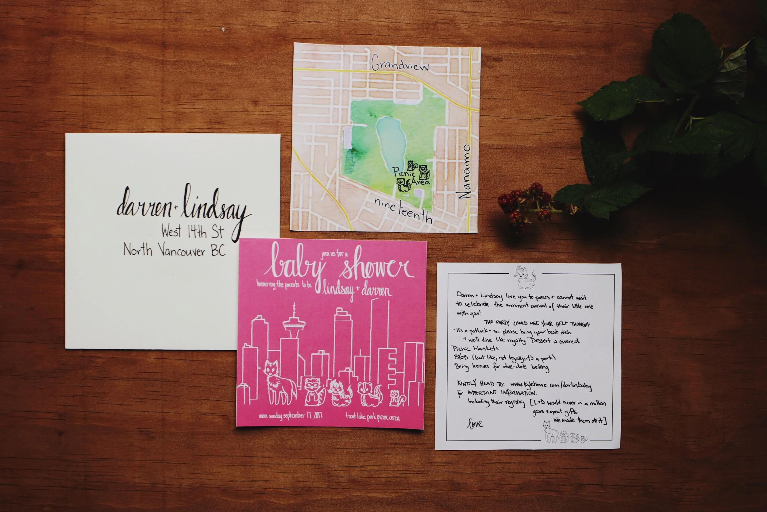 I put together the rest of the invites, did the lettering and layout, but hot damn I loved my urban woodlands creatures.
